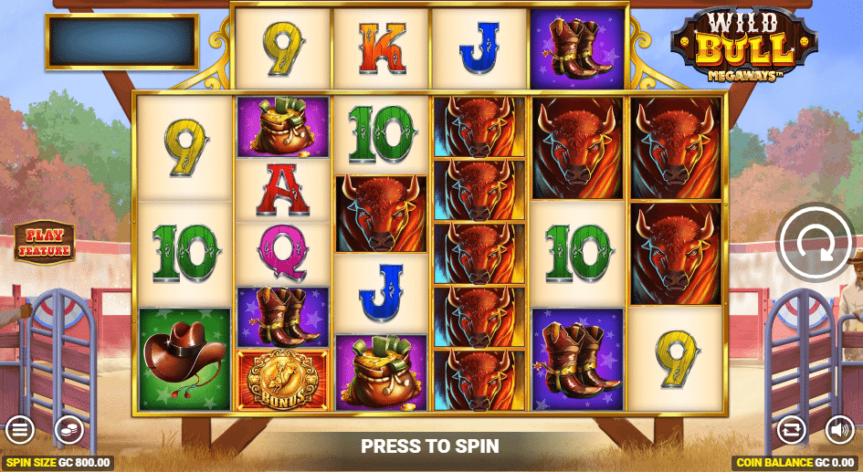 Get ready for some high-stakes rodeo action with Wild Bull Megaways from 24/7 Gaming. This slot takes you to the heart of a dusty bull-riding arena, where the reels are set against a dramatic backdrop of a roaring crowd and a fiery sunset. The game’s vibrant visuals and dynamic animations bring the thrilling atmosphere of a rodeo to life. Using the Megaways engine, the reels offer up to 117,649 ways to win on every spin. The gameplay features are designed to match the high-energy theme. The cascading reels feature is in full effect, allowing winning symbols to explode and be replaced by new ones for continuous win potential. The main event is the Free Spins bonus, triggered by landing four or more scatter symbols. Once in the free spins, an unlimited progressive multiplier comes into play, increasing with every cascade. What makes this game truly exciting is the Wild Bull feature. This can randomly activate during the base game or free spins, where the bull charges across the reels, adding extra wilds or transforming symbols to create bigger winning combinations. The symbols include classic cowboy hats, boots, horseshoes, and ropes, all rendered in a bold, cartoonish style. The sound design perfectly complements the theme, with stomping hooves, cheering crowds, and a twangy guitar soundtrack that makes you feel like you’re right in the middle of the action. This high-volatility slot is perfect for players who love western themes and the thrill of chasing massive, unpredictable wins.